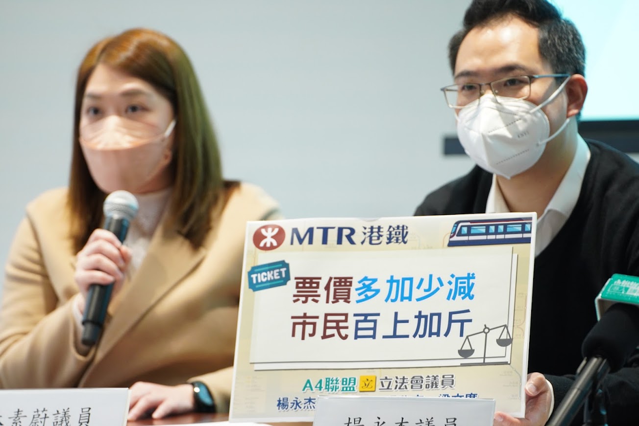 社會全面復常之際,各公共事業服務已率先「搶閘」加價。中電及港燈電費各按年增加19.8%及45.6%,加幅創歷年新高。公共交通服務亦跟上加價潮,專營巴士公司及天星小輪擬分別加價一至兩成及一倍,市區及新界的士同樣尋求起錶價上調的可能性,其他服務如房委會轄下停車場收費也將加價。「A4聯盟」認為,在各大公共服務加價潮的背景下,港鐵若仍維持「多加少減」的作風,只會令市民生活百上加斤。