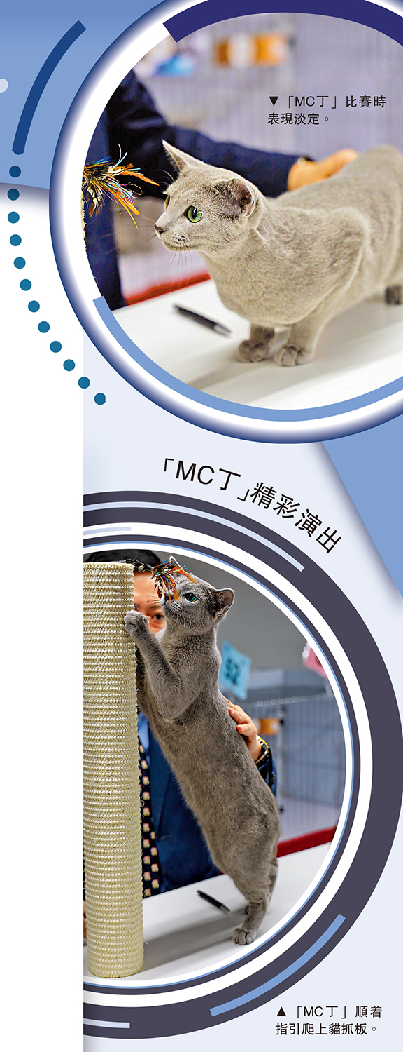 當日比賽的過程,可以說是明星貓MC丁的個人騷。有過幼貓組參賽經驗的丁丁很自然地與Kit Fung進行互動,不時細嗅逗貓棒的味道並隨着逗貓棒的指引爬上貓抓板。比賽結束後,丁丁收穫不俗成績,獲得了全品種新秀冠軍貓第一名、全品種總冠軍貓第二名、短毛貓組新秀冠軍貓第一名以及短毛貓組總冠軍貓第二名。