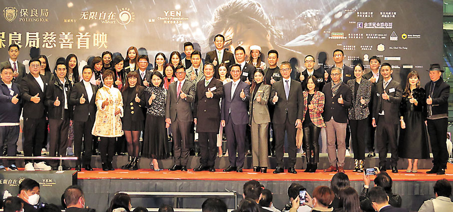 (香港文匯報 記者 阿祖)電影《天龍八部之喬峰傳》前晚舉行慈善首映禮,身兼監製、總導演和主演的甄子丹、監製王晶、演員徐小明、呂良偉、張兆輝及王君馨盛裝出席,同時邀得文化體育及旅遊局局長楊潤雄、保安局局長鄧炳強為主禮嘉賓。子丹很高興在港搞首映禮,感覺終於走出陰霾好開心,相信香港經濟亦會重新回復過來!