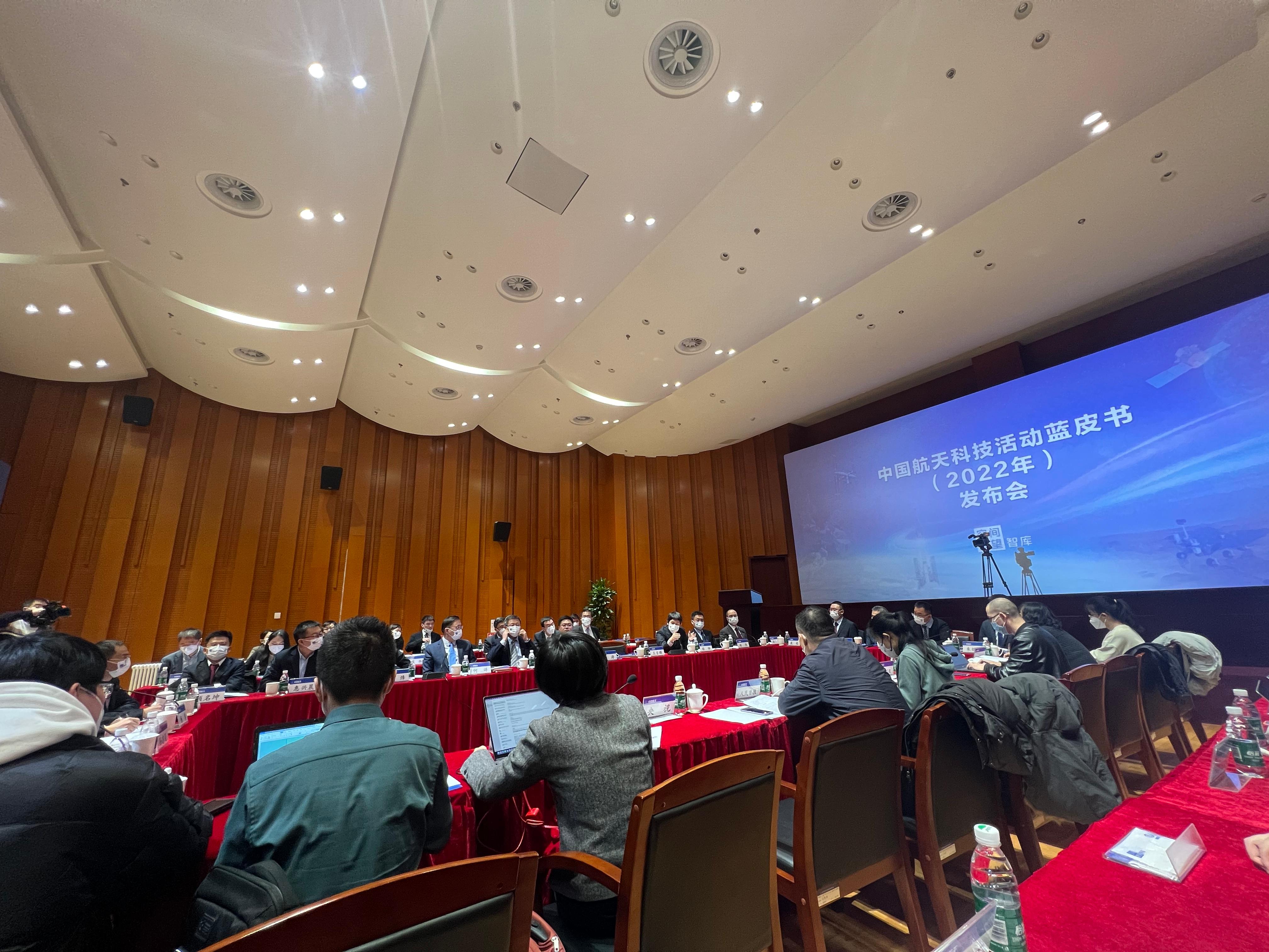 (大公文匯網記者 劉凝哲)中國航天科技集團有限公司今日在北京發布《中國航天科技活動藍皮書(2022年)》(簡稱《藍皮書》)。《藍皮書》顯示,航天科技集團2023年計劃安排60餘次宇航發射任務,發射200餘個航天器,開展一系列重大任務:載人空間站工程進入應用與發展階段,空間站轉入常態化運營模式,將完成1次貨運飛船、2次載人飛船發射任務和2次返回任務;全面推進探月工程四期和行星探測工程,開展嫦娥七號、天問二號等型號研製;發射多顆國家民用空間基礎設施科研衛星和業務衛星;完成長征六號丙運載火箭首飛,進一步完善長征火箭型譜。