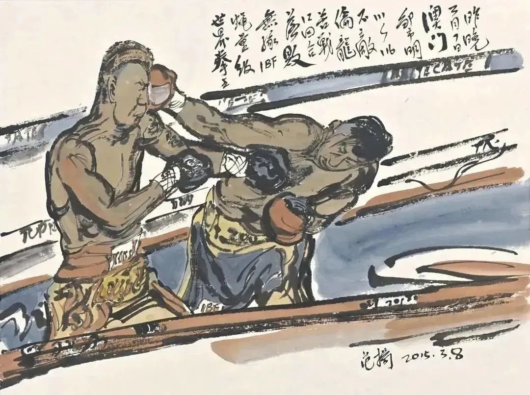 在范揚的「世事繪」作品中,有很大一部分是體育題材的作品。范揚從小喜歡體育,每次體校教練來學校選人,他都會第一個被選中,後來雖然沒有從事這項工作,但這份熱忱卻一直種在了他的心裏。
