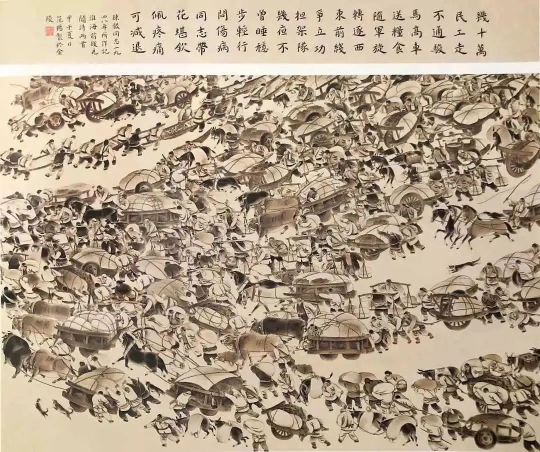 2022年夏天,中國美術館舉辦了一場「南京師範大學120周年美術教育藝術作品展」,在這場展覽上展出了范揚一幅名為《支前》的作品,這是范揚為第六屆全國美展專門創作的。