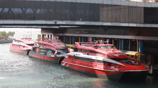大公文匯全媒體報道,澳門今日(19日)重開外港碼頭到香港的海上客運航班。噴射飛航今早8時由上環出發,載有176名乘客,澳門首班船因為航班調動,在今早9時40分開出,比正常船期大約遲10分鐘,全船279個普通和豪華位都滿座。