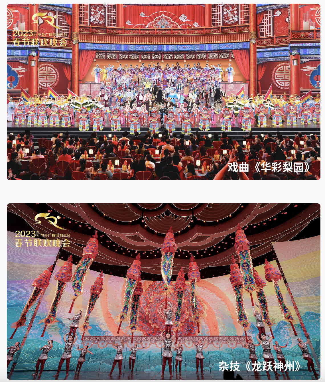 《2023年春節聯歡晚會》以真誠質樸、清新簡約的藝術風格,為廣大觀眾送上了一台熱氣騰騰、溫情滿滿的除夕文化大餐,盡展奮進新征程的喜慶律動。
