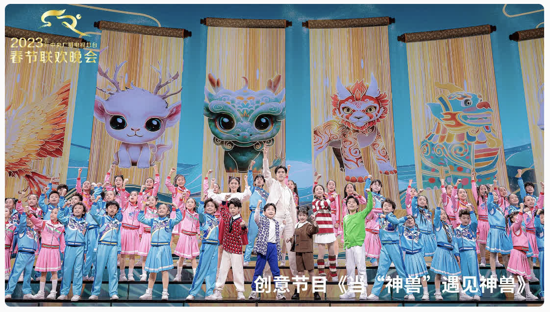 創意節目《當「神獸」遇見神獸》以《山海經》《抱朴子》《史記》等中國古典典籍中的吉祥神獸為原型,結合VR技術、國潮繪畫,設計出麒麟、鳳凰、白澤、貔貅等中國神獸形象,讓孩子們從「神獸」身上汲取勇敢奮進、自強自信的精神力量。