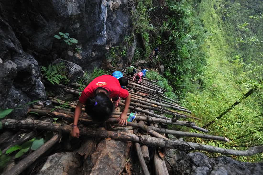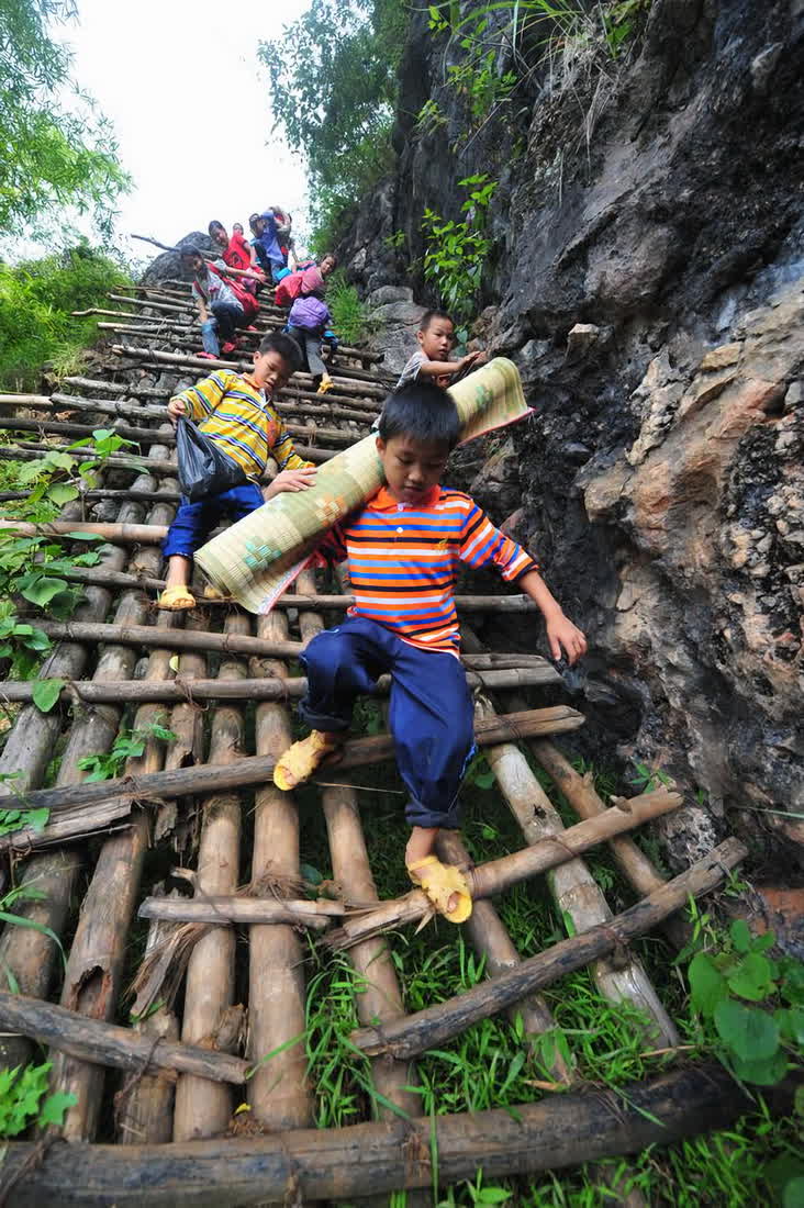 廣西大化瑤族自治縣板升鄉弄勇村弄頂屯的蒙宣任和蒙宣汰兄弟倆曾是「天梯少年」,小時候他們需要翻山路、爬「天梯」去上學。如今,他們都已長大——22歲的哥哥蒙宣任目前在遼寧省交通高等專科學校讀大二,19歲的弟弟從技校畢業後在廣東一家汽修廠上班。十一年前爬「天梯」求學的兄弟,都實現了自己的夢想。