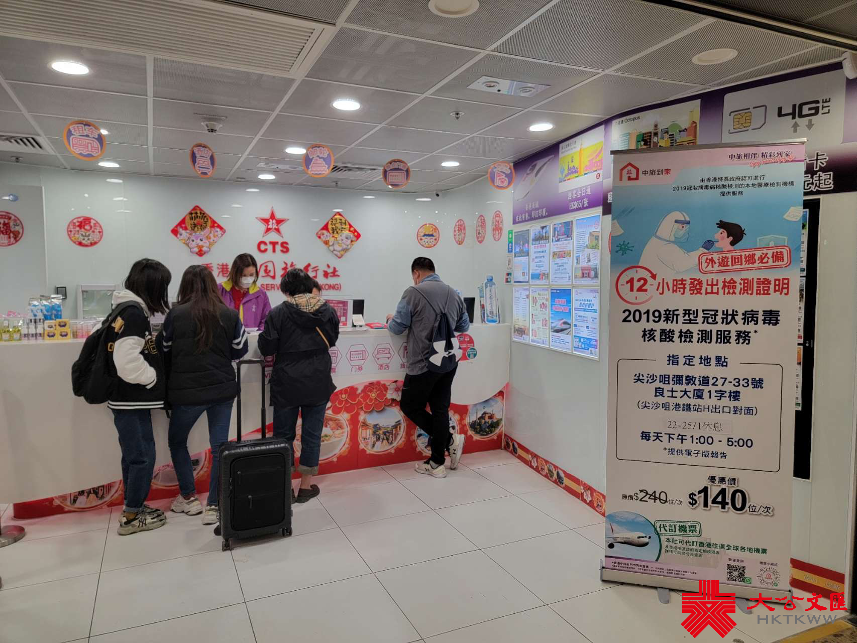 另有一位旅行社職員向記者表示,內地旅客到達後會到店內辦理酒店及電話卡服務,鑒於新年期間有部分檢測站未有營運,旅行社亦會為乘客辦理核酸檢測預約服務,只要在店內付款後,即可在指定時間內到達檢測地點進行檢測,並於12小時內取得檢測證明。