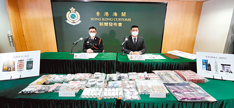 海關情報科情報處理組署理指揮官歐陽嘉倫昨日表示,近年市面興起大量標榜含有大麻二酚(CBD)的產品,包括食品、飲品、護膚品、個人護理產品甚至寵物用品等,聲稱可紓緩神經或排毒等,對人體健康有好處(見表),但大部分也是沒有權威的科學實證。他指出,大麻二酚(CBD)和四氫大麻酚(THC)同屬大麻類植物。天然存在的大麻素本身沒有精神活性,但在提煉成純大麻二酚過程中,極難除去四氫大麻酚,而四氫大麻酚有精神活性的作用,會令人產生幻覺和上癮,同時受到現時《危險藥物條例》監管。