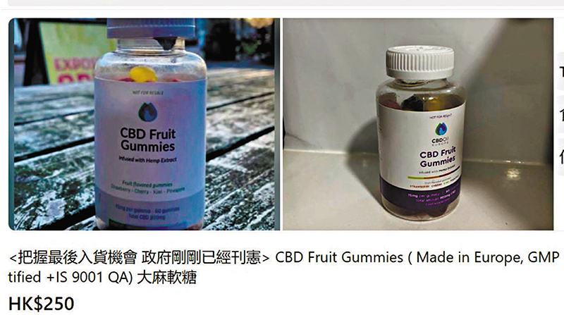 (香港文匯報 記者 文森)管制大麻二酚(CBD)的新法例將於下周三(1日)生效。由該日起,CBD將如其他危險藥物一般,受到《危險藥物條例》的嚴格管制。事實上,坊間不少產品都含有CBD,由外用的護膚品以至食用的朱古力及啤酒也有此成分,自特區政府去年10月刊憲將大麻二酚納入《危險藥物條例》管制後,本港多間標榜出售含該成分產品的實體店已先後停業,但香港文匯報發現,網上仍有不少人在新法例下月1日生效前,出售含有關成分的不同產品,並可用快運或安排與買家面對面交收。