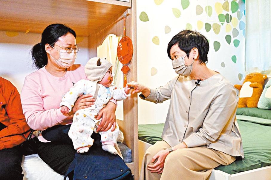 輪候公屋約一年半的吳女士,與兒子相依為命,參觀期間向何永賢講述自身情況,一時感觸落淚。