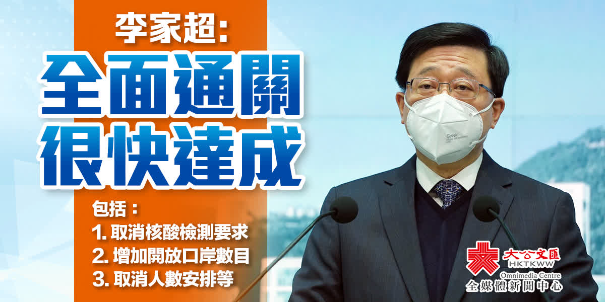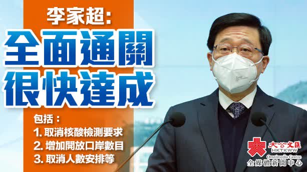 同時,李家超指出,將考慮取消海外來港的限制,包括取消訪客疫苗接種要求以及取消來港之前的快測要求等。