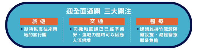 全面通關在即,香港是否已經準備好迎接機遇與挑戰?跨境直通巴士業界表示,已經準備就緒,隨時可以增加運載力;旅遊業界期望,可以恢復旅行團往來,港人北上吃喝玩樂,內地旅客可以來港消費振興經濟。立法會議員建議,隔離設施與新冠疫苗接種計劃仍要維持,以防新冠疫情隨時反撲。