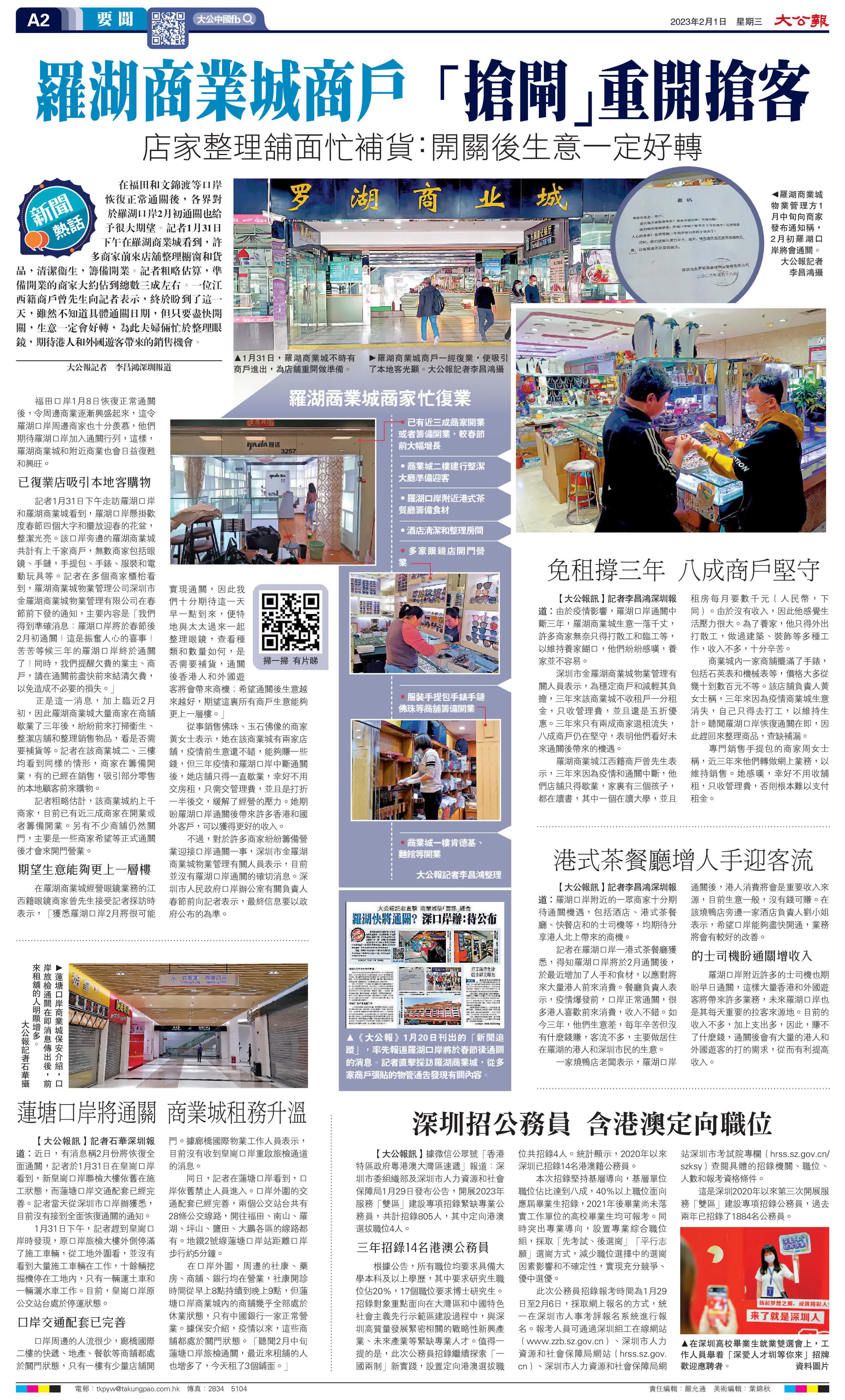 深圳市金羅湖商業城物業管理有關人員表示,為穩定商戶和減輕其負擔,三年來該商業城不收租戶一分租金,只收管理費,並且還是五折優惠。三年來只有兩成商家退租流失,八成商戶仍在堅守,表明他們看好未來通關後帶來的機遇。