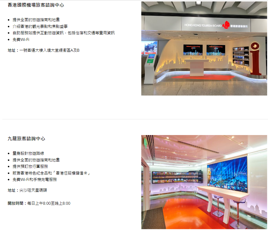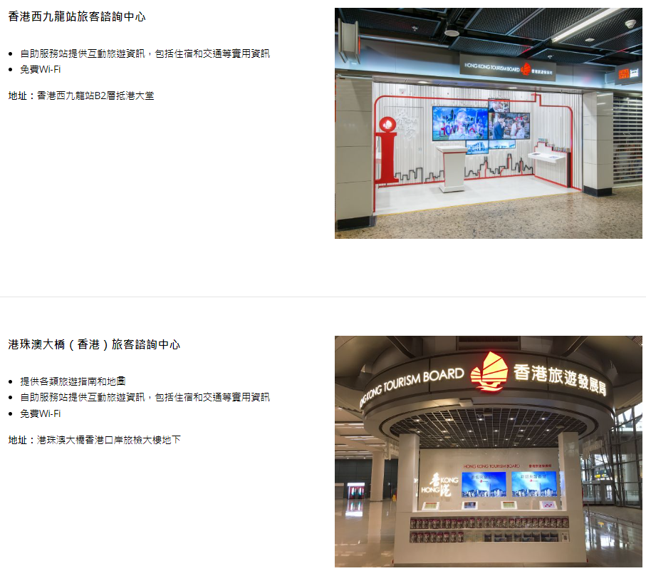 4個派發「香港有禮」禮品卡的旅發局旅客諮詢中心: