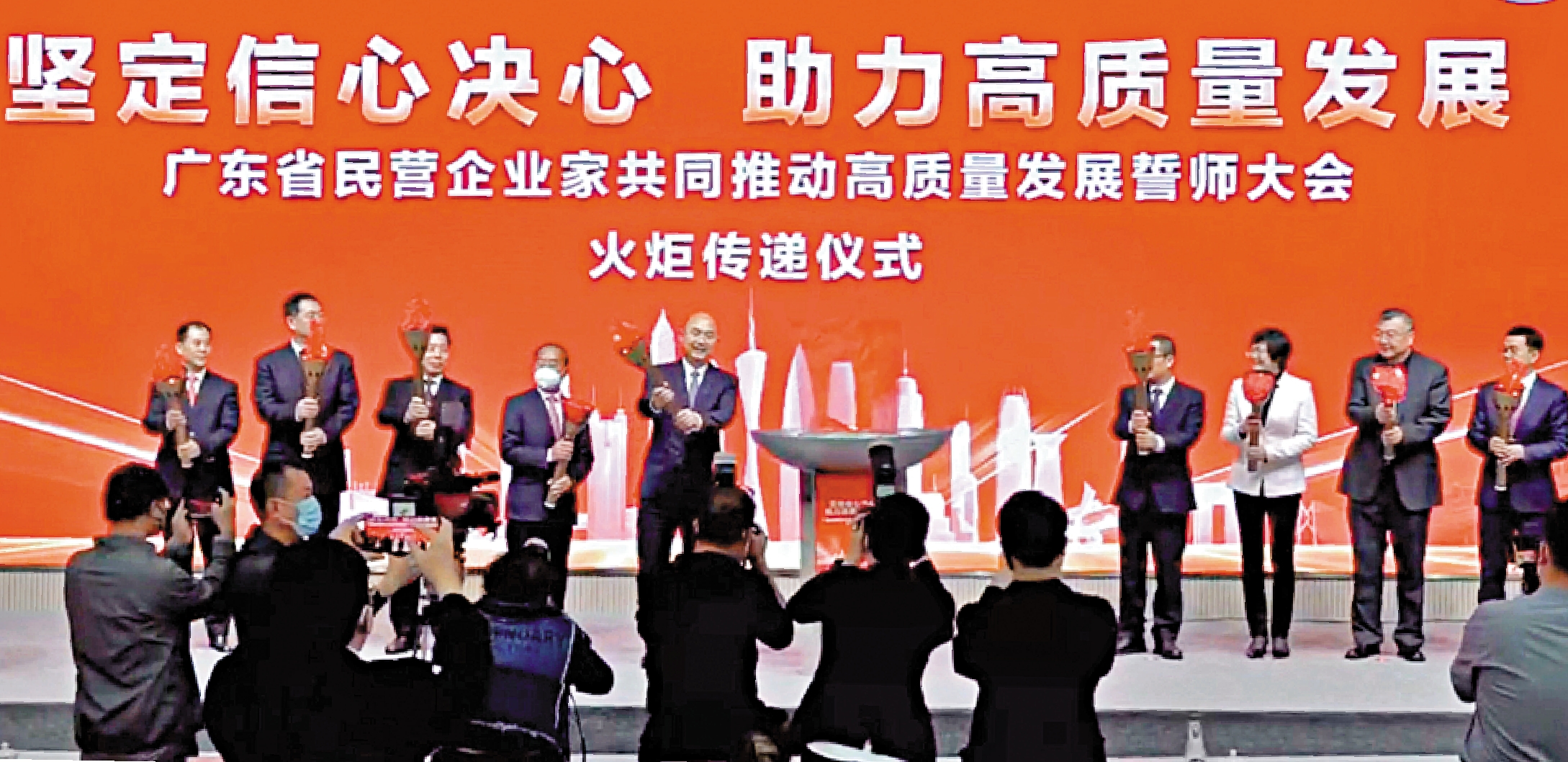 (大公報記者 方俊明)2日,廣東省民營企業家共同推動高質量發展誓師大會在廣州舉行,會上發布《廣東省民營企業高質量發展》倡議書,提出積極參與廣東20個戰略性產業集群建設,搶先布局高端產業,把產業、市場優勢和港澳金融、科創等資源結合起來,加快推動大灣區協同發展。與會人士建言,港澳企業可把握共同推動高質量發展這一機遇,透過相關產業對接,加快關鍵核心技術攻關,提升「廣東製造」在「一帶一路」市場佔有率,挺進行業無人區,於「再造一個新廣東」的號角聲中衝鋒。