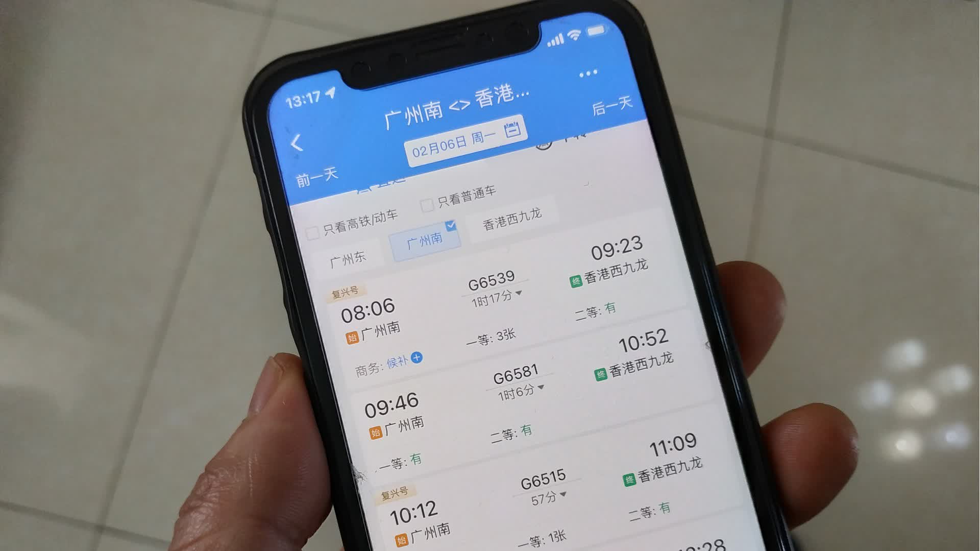 記者3日中午13時半在12306官網查詢看到,2月5日(周日)、6日(周一)「廣州東/廣州南往返香港西九龍」全天車次的二等座都餘票充足,2月11日(周六)全天車次的二等座都均可預訂。而2月6日廣州東/廣州南往返香港西九龍的商務座車票預售相對火熱,基本處於「候補」狀態,而部分車次的一等座車票也熱銷。