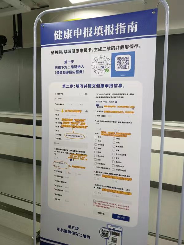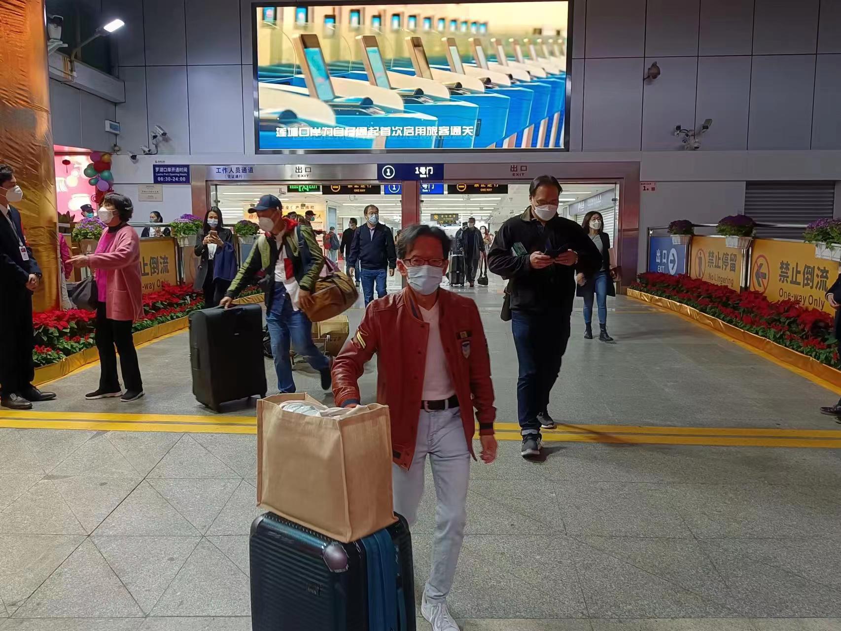 通關首日,大批旅客聚集在羅湖口岸出境大廳填報健康申報卡,老年旅客成為向工作人員求助填報健康申報卡的主要對象。