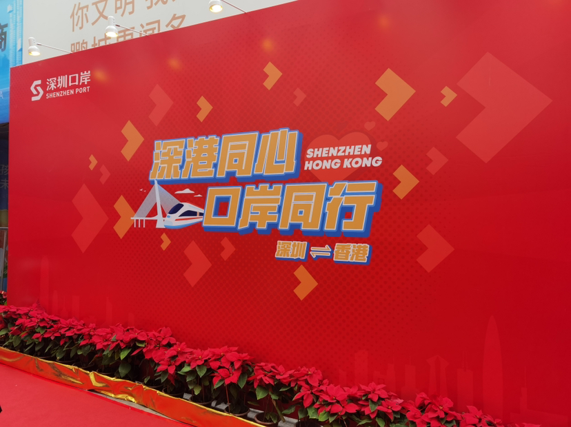 深圳口岸張貼了「深港同心 口岸同行」的海報,歡迎港人。許多志願者都在協助出來的市民,也有志願者在邀請市民前來海報寫下自己的心願。