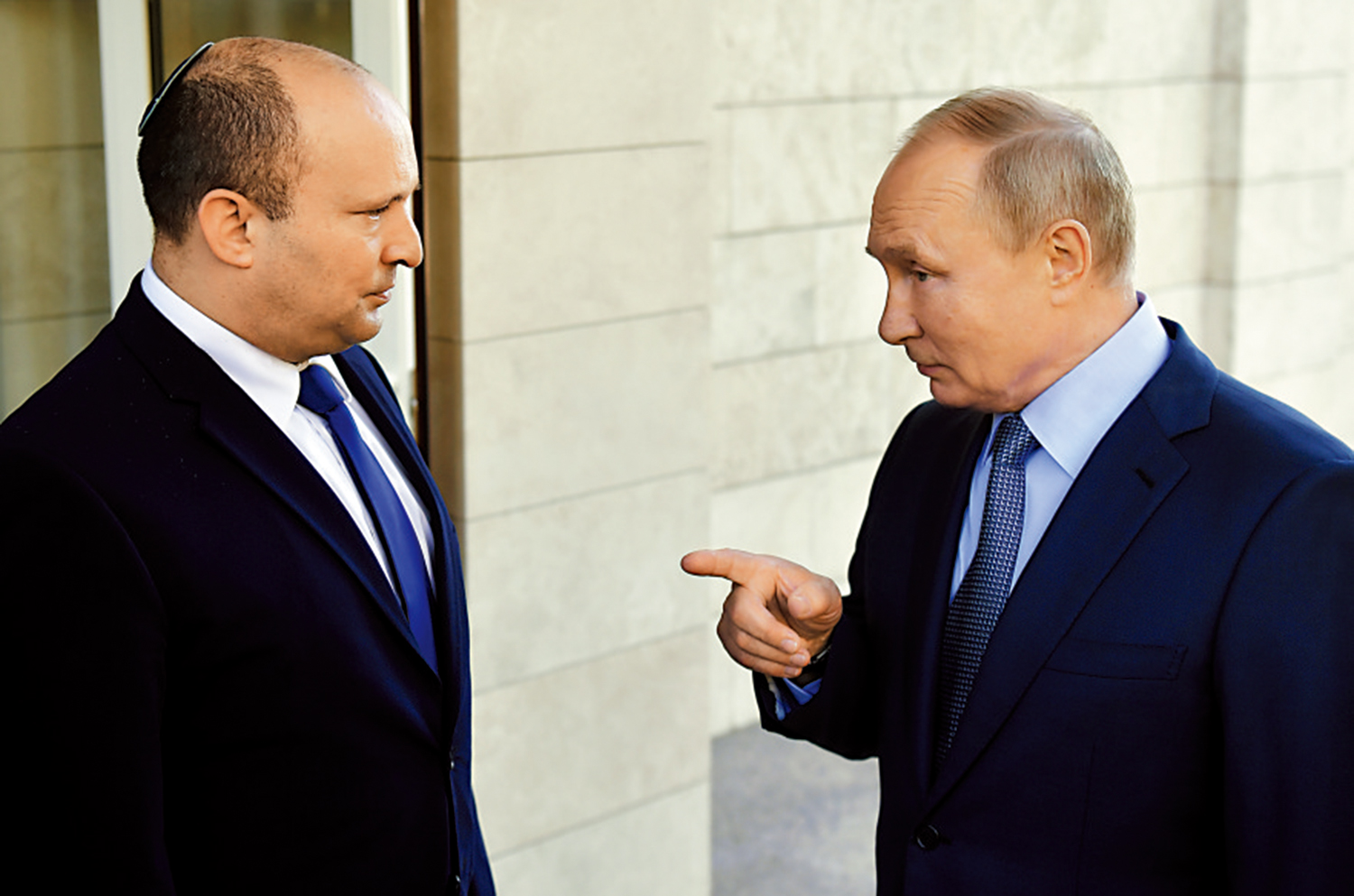 俄烏衝突去年2月下旬爆發後,時任以色列總理貝內特3月訪俄,嘗試從中斡旋。貝內特在和普京談話大約三、四個小時後,他問普京是否想殺死澤連斯基,普京稱不會。貝內特要求普京向他保證,普京說「我不會殺澤連斯基」。貝內特之後打電話給澤連斯基告訴他普京的承諾,並稱「百分之百」是確定的。