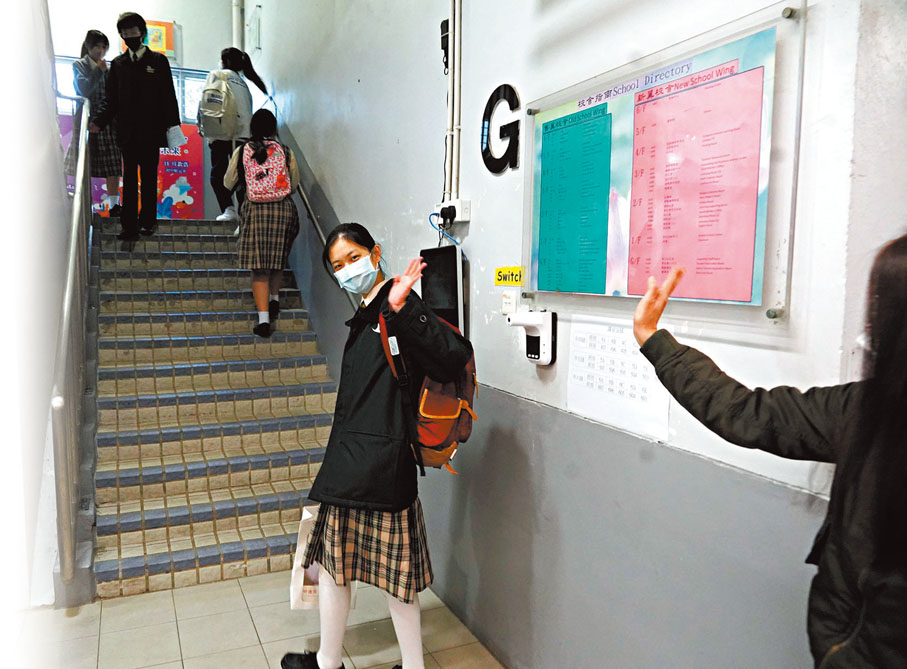 (香港文匯報記者 姬文風)香港與內地全面復常通關後,7,000名跨境中學生昨日起正式回港上面授課堂。疫情三年,讓青春的校園回憶蒙上了不少灰塵,但隨着復課與老師見面共聚,隔閡一掃而空。有中四女生分享說,疫情前自己仍是初入學的中一生,只在校園待了半年,這三年間不少有關學校記憶已開始淡忘,昔日體育服亦已不再合穿,昨日與上了三年網課的老師重逢亦只能「憑聲認人」。有應屆文憑試考生感慨指,大半高中生涯都在網課中度過,幸有一班熱心師長和同學關心照料,即使餘下校園時光已經不多,仍充滿期待。