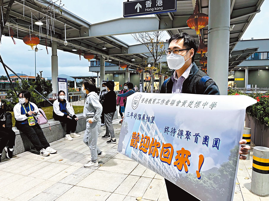 「三年的隔屏相望,終待得聚首團圓。」這是昨日早上在皇崗口岸,教聯會黃楚標中學溫Sir手持的歡迎橫額的語句,亦是數以千計昨日復課的跨境學生及其老師同學的心聲。