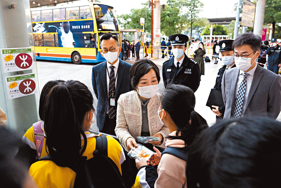 蔡若蓮昨日上午到訪深圳灣管制站,聽取入境事務處人員簡介,並視察學生使用便利過關服務及乘搭公共交通工具的情況,對跨境學生整體入境過程和交通安排暢順感到滿意。她形容,整體跨境生回校過程順利,無論香港或跨境學生都能重過正常校園生活感到開心。