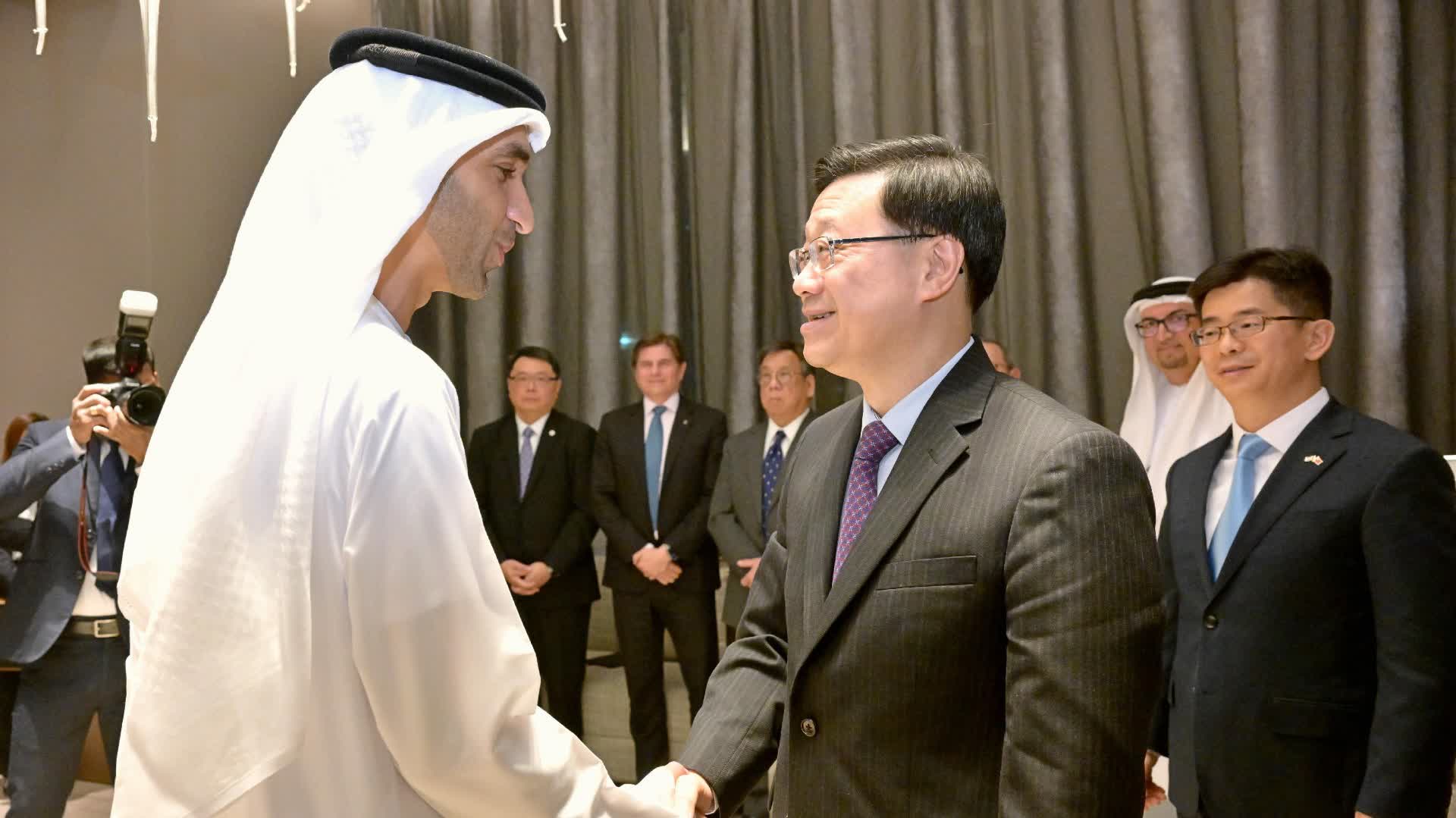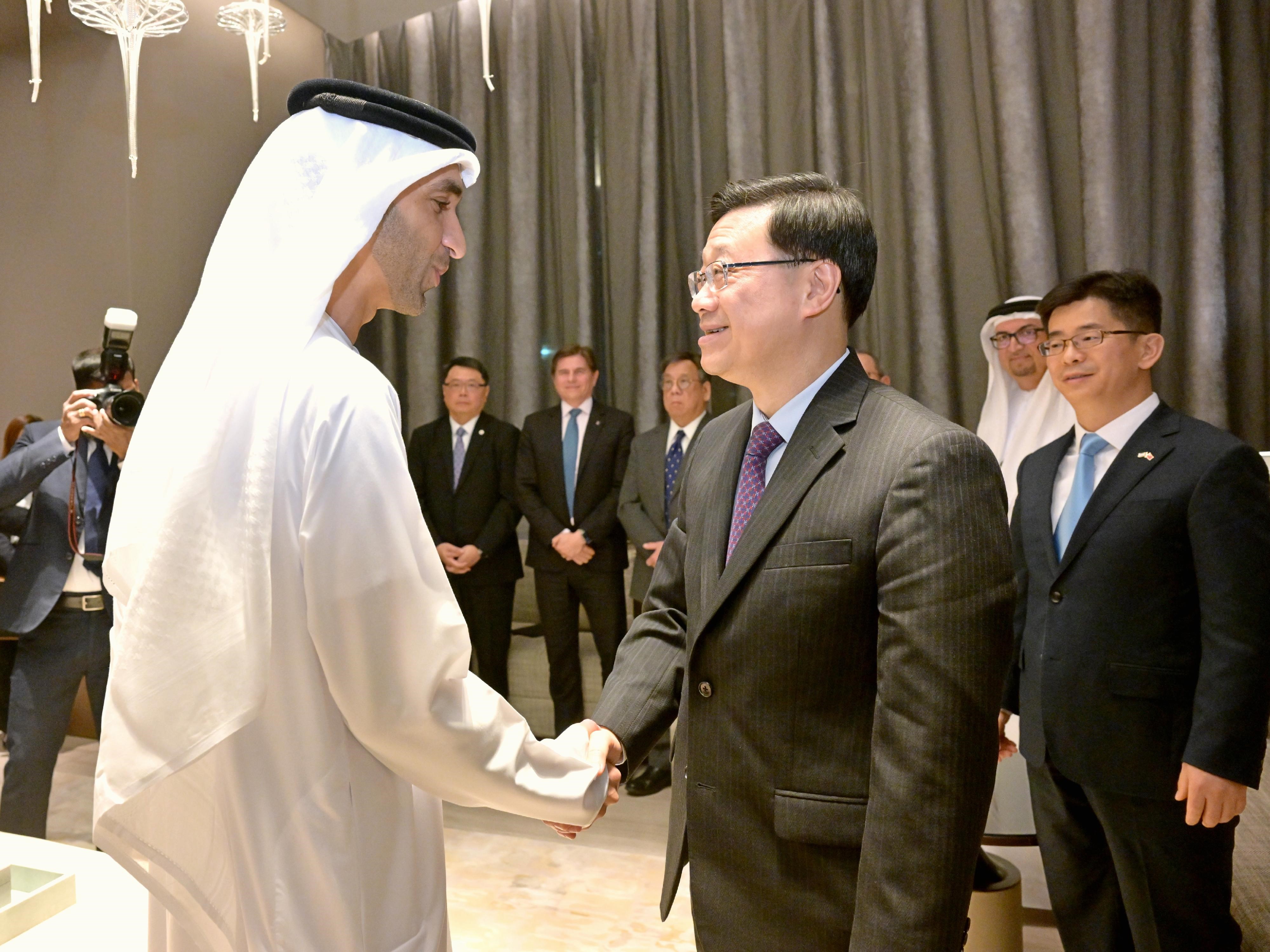 下午,李家超啟程轉往迪拜訪問。李家超傍晚與阿聯酋經濟部外貿國務部長Thani bin Ahmed Al Zeyoudi會面。李家超在會面中表示,阿聯酋企業和投資者從新能源和傳統能源,到智慧城市、交通、物流、金融科技和生物科技等領域,在香港都擁有無限機遇,期待兩地企業進一步探索「一帶一路」倡議下的合作機會。