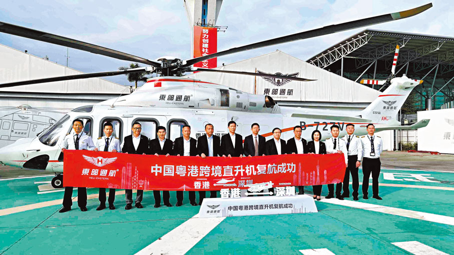 2019年6月28日,東部通航獲得中國001號跨境飛行許可,實現粵港直升機跨境首飛。自2020年初開始,因疫情影響,跨境飛行被按下了暫停鍵。隨着香港與內地全面通關,2月8日,粵港直升機跨境飛行在第一時間實現全面復航。