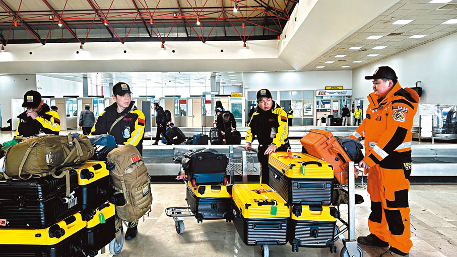香港文匯報訊綜合記者俞晝及新華社報道,當地時間8日下午1時30分,經過四個多小時的艱難行程,中國救援隊一行82人抵達土耳其地震重災區哈塔伊省的哈塔伊市,隨後立即安營紮寨,並同當地災害與應急管理署官員對接,得到兩塊搜救區域,準備開始實施搜救行動。當天晚些時候,經香港轉機的中國公羊救援隊也趕抵阿達納機場。藍天救援隊、深圳公益救援隊等中國救援力量也正不斷向土耳其地震災區集結,有參與協助救援、主動擔任嚮導的當地年輕導遊說,看到這麼多救援力量,就看到了希望,「感謝你們,來幫助我的家鄉!」
