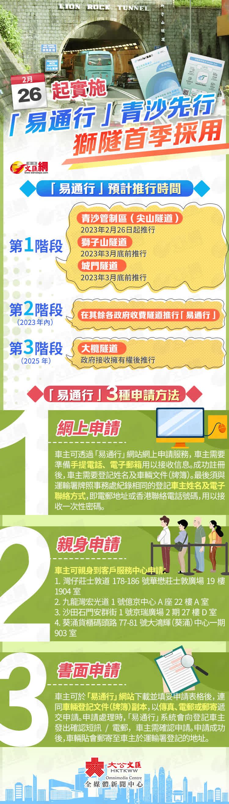 羅淑佩表示,「易通行」稍後會擴展至城門隧道和獅子山隧道,預計夏季擴展至紅隧和東隧。特別提醒的士車主和司機,司機每次開工將司機卡插入卡座,便可記錄行經的隧道和繳費。立法會正在討論三隧收費建議,預期日後的士行經東隧好大機會不再設空車收費。