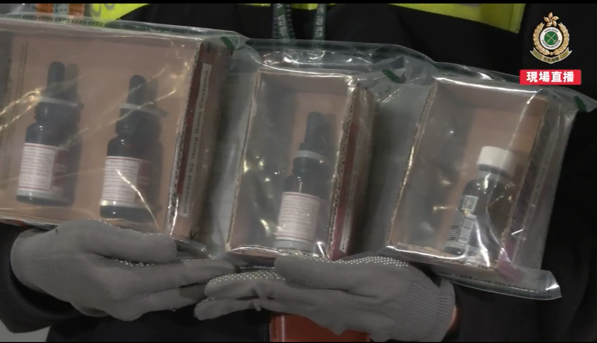 海關指,人員於本周二在機場抽驗一件由丹麥抵港、報稱為皮膚用油類產品的空運郵包內發現兩支懷疑CBD油,案件交由毒品調查人員跟進調查發現,收貨地址為油麻地一個私人住宅的會所。人員昨日展開行動,拘捕一名30歲男子,並在他工作地點檢獲另外兩支CBD油及4克懷疑大麻花,又在他將軍澳的單位檢獲一個含有少量懷疑大麻花的毒品研磨工具,期間檢獲的產品估計市值約5000元。