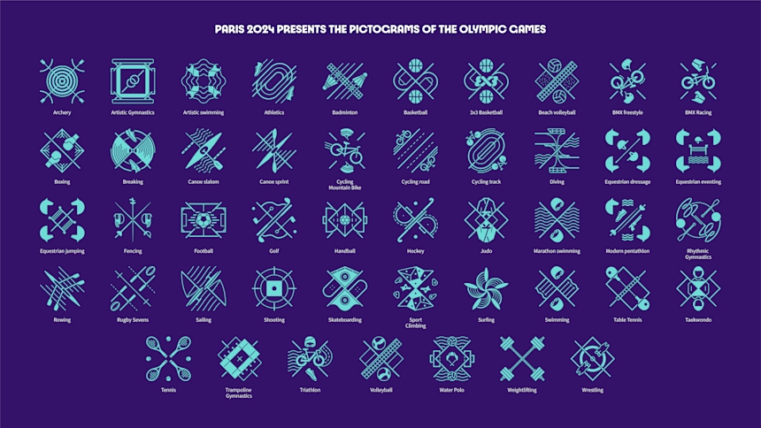 據組委會介紹,此次巴黎奧運會的圖標設計重點在於傳遞「榮譽徽章」的理念。作為奧運形象景觀的重要組成部分,組委會希望這些圖標不僅能代表特定的體育項目,同時也代表所有參與、從事這個運動項目的人群,它是一份屬於集體的榮耀。