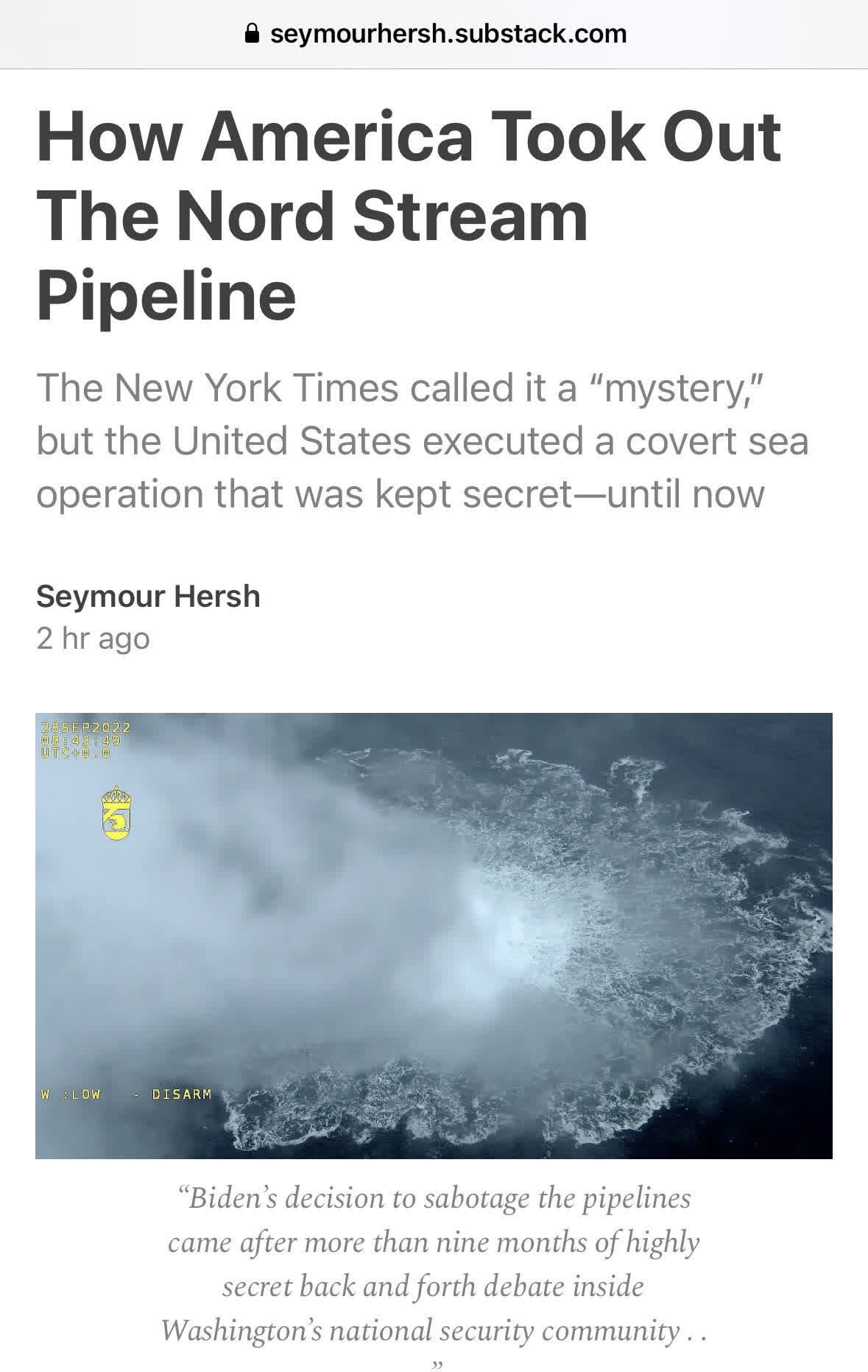 據鳳凰網報道,2月8日,普利策獎獲得者、美國資深記者西摩·赫什在其個人網站上刊登了一篇題為《美國如何摧毀北溪管道》的文章。