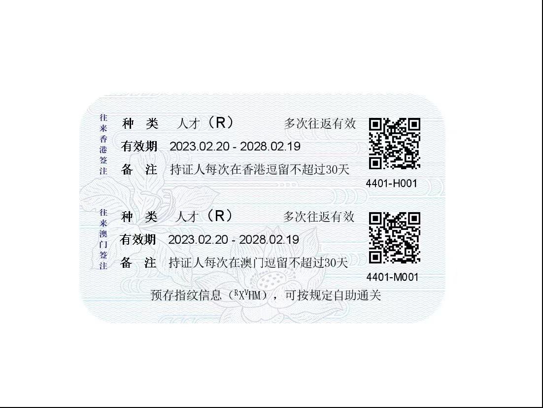 在新措施下,符合內地當局訂定的資格的六類人才可以向內地當局申請有效期五年、三年或一年的人才簽注,在簽注有效期內多次往來香港,每次在香港逗留不超過30天。相較目前的商務簽注的七天逗留期限,人才簽注將大大提高合資格高端人才訪港的便利性。如持人才簽注的人士同時符合較早前特區政府在2023年2月1日起擴展的「為來港參與指定界別短期活動的訪客提供入境便利先導計劃」,亦可以訪客身份在港參與指定短期活動而無須申請工作進入許可。