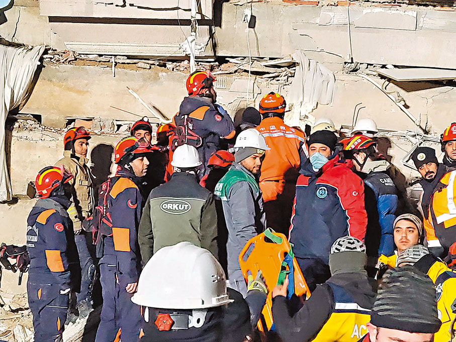在土耳其南部的地震重災區哈塔伊省安塔基亞市,中國救援隊的搜救點位於一個街區深處的廢墟,原是一座居民樓,現已完全坍塌。據當地民眾提供的信息,樓房倒塌時裏面還有幾名住戶未能及時逃離。