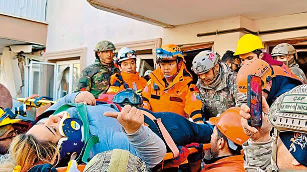 香港文匯報綜合記者俞晝及新華社報道,當地時間9日凌晨1時30分,土耳其地震重災區哈塔伊省安塔基亞市,中國救援隊與當地救援隊合作從一處廢墟成功救出一名被困孕婦!當地時間9日下午1時30分,中國公羊救援隊聯合土耳其陸軍城搜隊,在伊斯肯德倫市貝倫鎮一處民房成功救出一家五口!躺在擔架上運送出來的母親向救援隊竪起了大拇指,鏡頭定格了這一寶貴的瞬間。