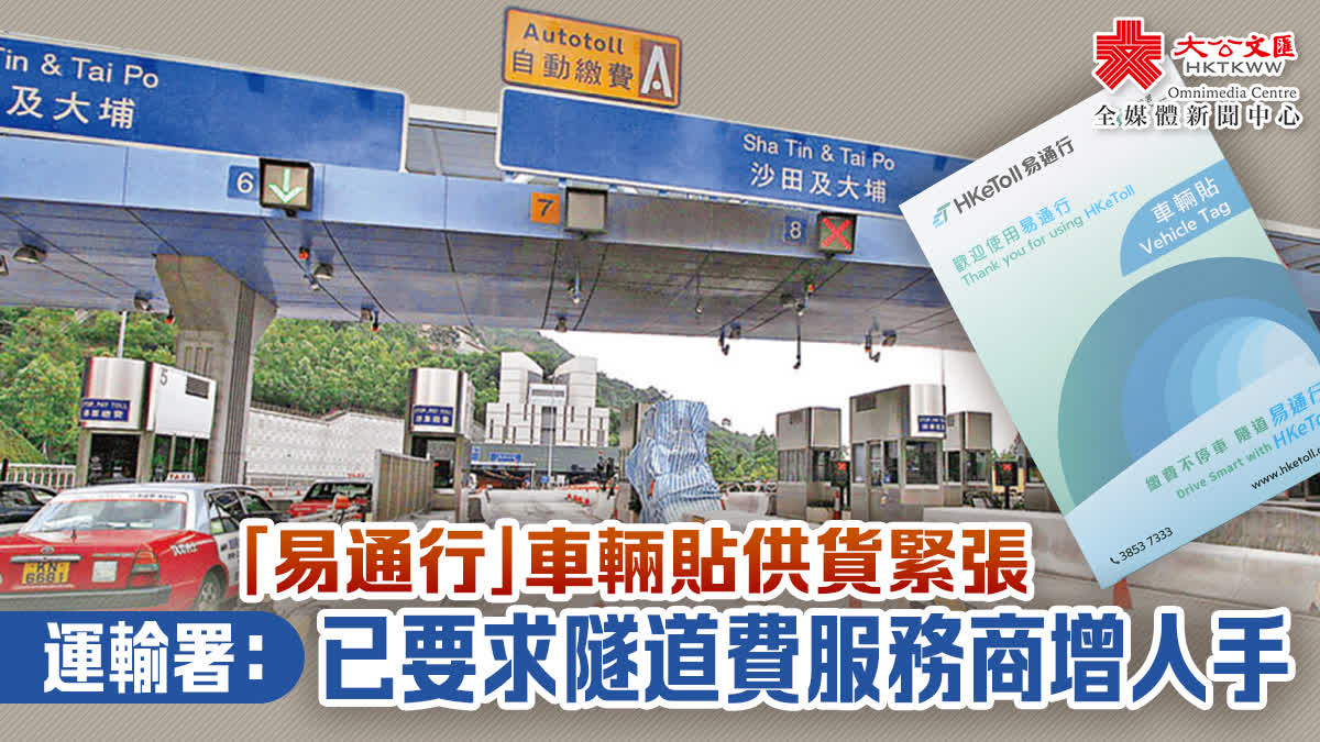 對於早前有個別車種貼需求急增,出現短暫供貨緊張,運輸署已要求隧道費服務商立即安排加大供應,並於各銷售點補充貨量,包括私家車及輕型客貨車的車種貼。而客戶服務中心及服務點一直有出售電單車車種貼,隧道費服務商將會在下星期,安排自動售賣機同時出售電單車車種貼。