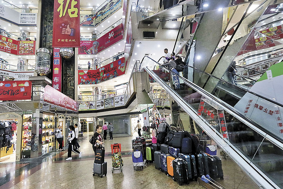 港人梁先生陪伴妻子在商業城內四處走動看衣服。他說,已差不多3年沒有來過,今次到來,是因為妻子過幾日要去泰國旅行,今次過來商業城打算買靚衫旅遊時拍照用。