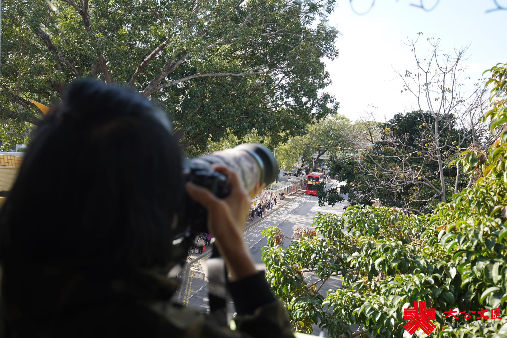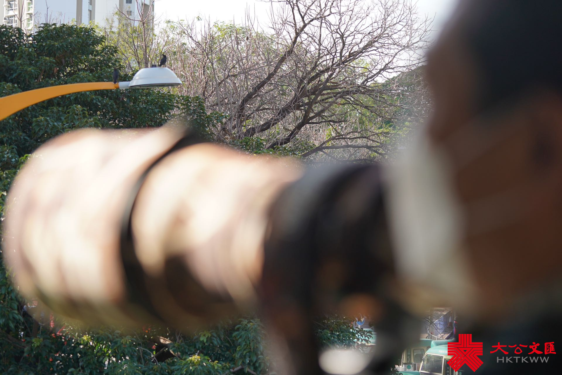 大公文匯全媒體報道,近日,隨着立春節氣的到來,香港天氣轉暖,雲雀出沒。在上水地鐵站,點新聞記者用鏡頭記錄了一些攝影愛好者們拍攝雲雀的鏡頭。