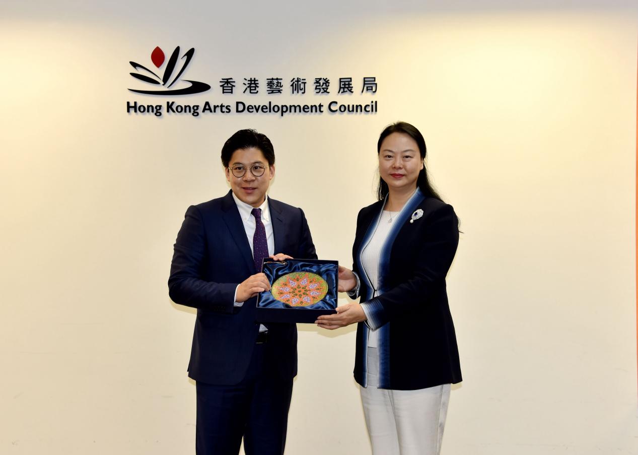 會上,雙方圍繞交流演出、人才選送、合作機制、文化藝術產業推動等方面進行了深入交流,藝術發局的發展策略、運作機制、組織框架、項目策劃等方面工作讓考察團印象深刻、深受啟發。雙方商定加強兩地相互了解與合作,共同推動兩地文化藝術交流與發展。