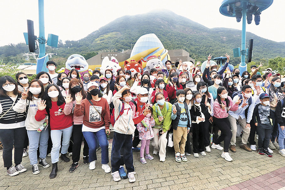 (香港文匯報 記者 唐文、李昌鴻、石華 香港、深圳連線報道)相隔3年,香港海洋公園昨日迎接首個由香園圍/蓮塘口岸直達的「點對點」旅行團,全團約有140名團友,是主辦方原本預計的50人多近兩倍,反應熱烈。該團總領隊表示,近日組團招募後,報名非常踴躍,原本有約170人表示有意參加,惟其中30人因為辦理不及赴港簽註而要延後出行。有主營入境遊的本地旅行社表示,全面復常通關後收到內地合作方的正面反應,惟受航班不足、簽註需時等因素,影響了出團數量。他們希望有更多省市恢復香港個人遊簽註。有內地旅行社表示,由於港澳通行證個人旅遊的簽註難以預約,影響了大量市民旅遊行程,但相信各區出入境管理局將會加大力度、增加設備和人員等,方便市民辦理通行證,預計一周後將會有更好的改善。