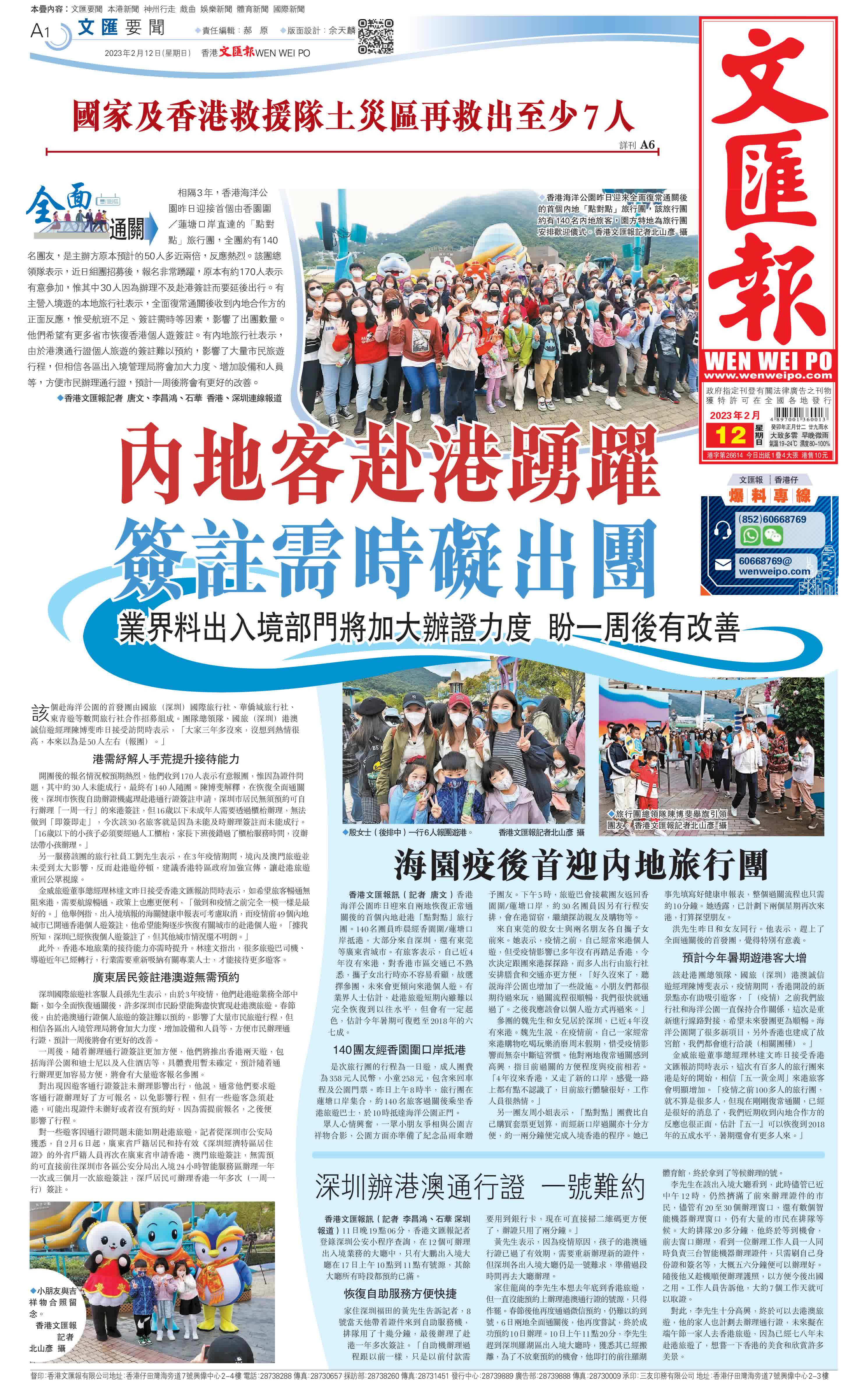 (來源:香港文匯報A01:要聞 2023/02/12)