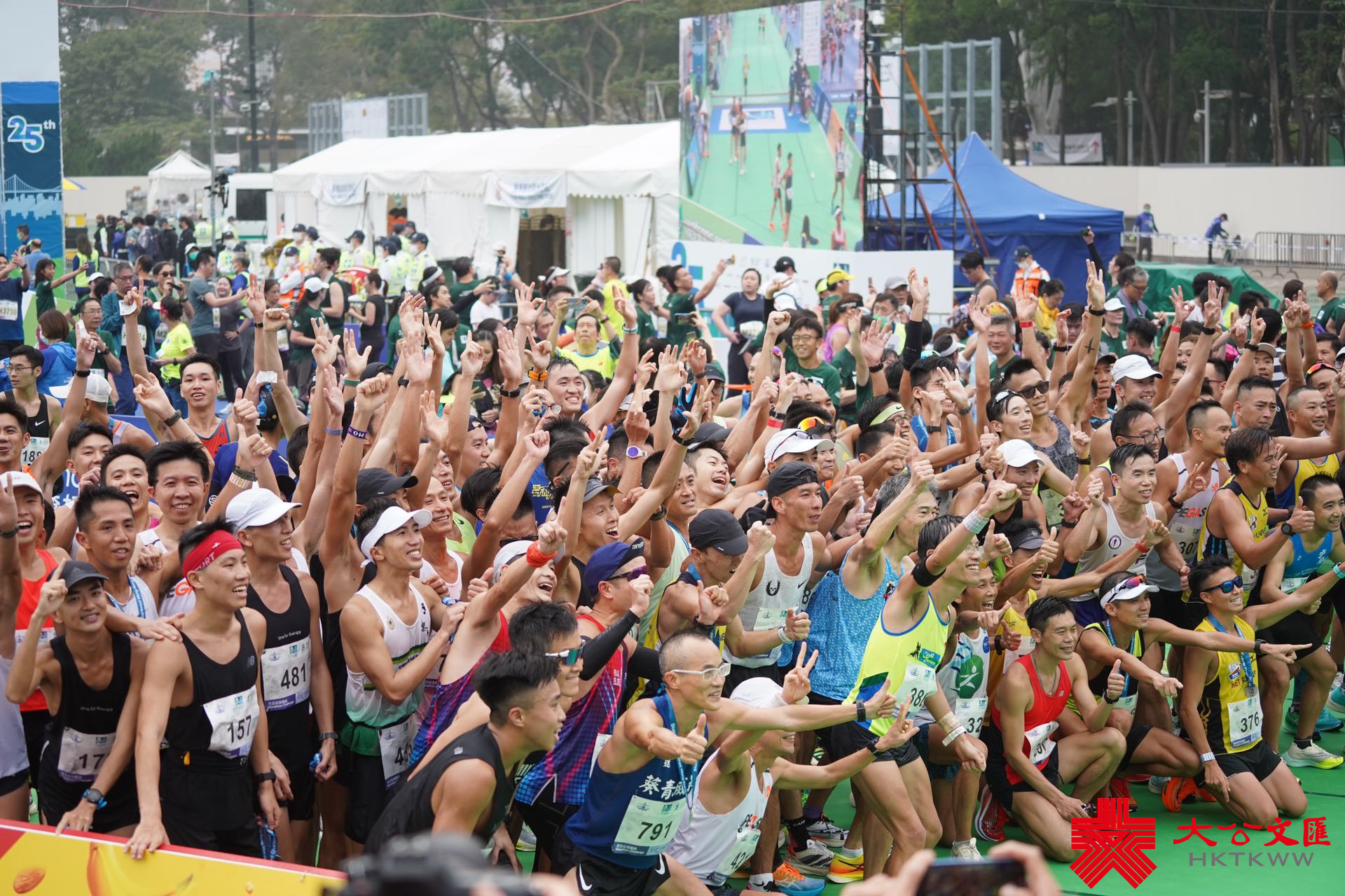 大公文匯全媒體報道,2023渣打馬拉松今日(12日)清晨正式開跑。今屆賽事有3.7萬個參賽名額,是香港復常後最大型體育賽事。行政長官李家超到場主持,為一眾健兒「打打氣」。不少名人亦積極參與,67歲的影帝周潤發一向熱愛行山及跑步,他今屆首次參賽,態度親切,大方接受傳媒訪問,並與市民及傳媒合影留念。