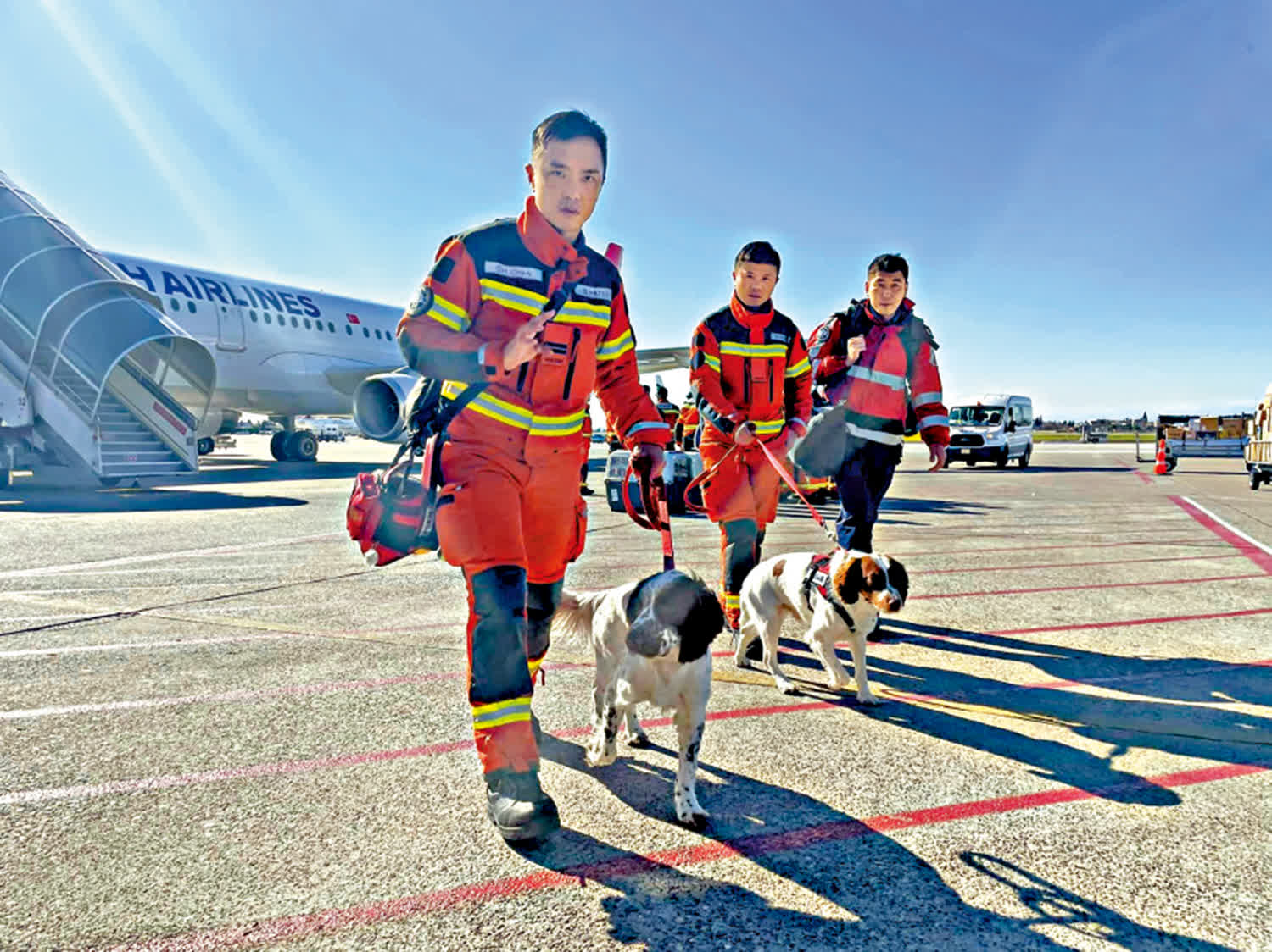 是次出發到土耳其的香港特區救援隊共59人,其中消防處派出約50人及兩隻搜救犬參與,由副消防總長率領,坍塌搜救工具、生命探測器、混凝土切割工具等一應俱全。