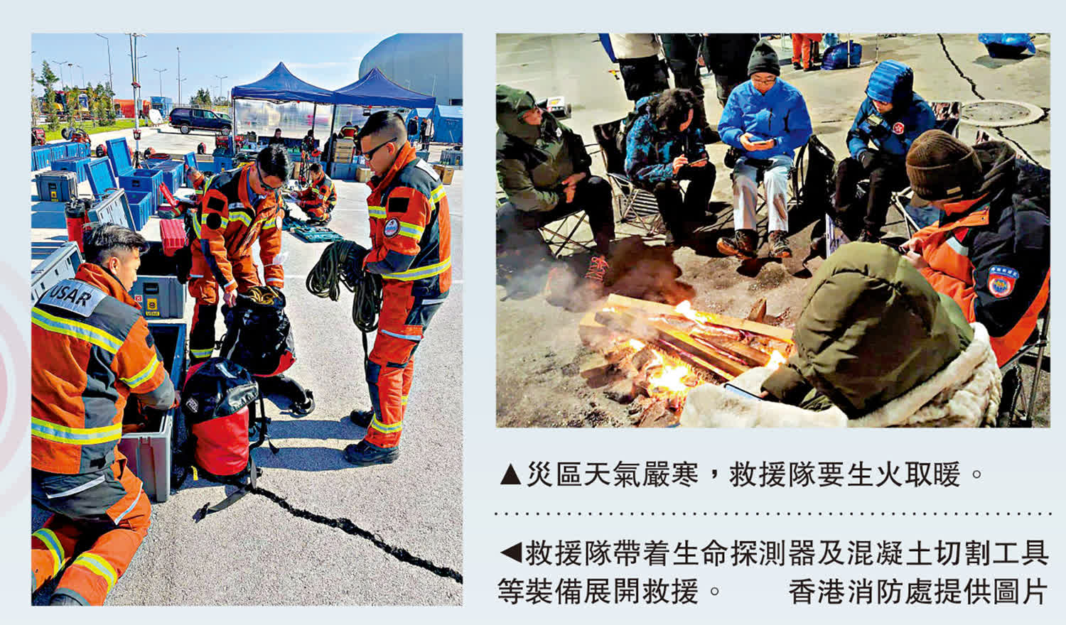香港消防處是次派出坍塌搜救專隊(USAR)前往土耳其協助救援,今次亦是消防處自2008年四川地震後,再次派出專隊前往境外參與救援工作。雖然同樣面對人命傷亡、頹垣敗瓦等惡劣環境,于文陽指出今次與四川救援行動略有分別,其中之一是土耳其救援的最大困難是面對當地嚴寒天氣。