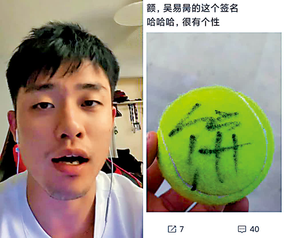 此前,有球迷晒出吳易昺簽名的網球,球上碩大的「餅」字令人忍俊不禁。