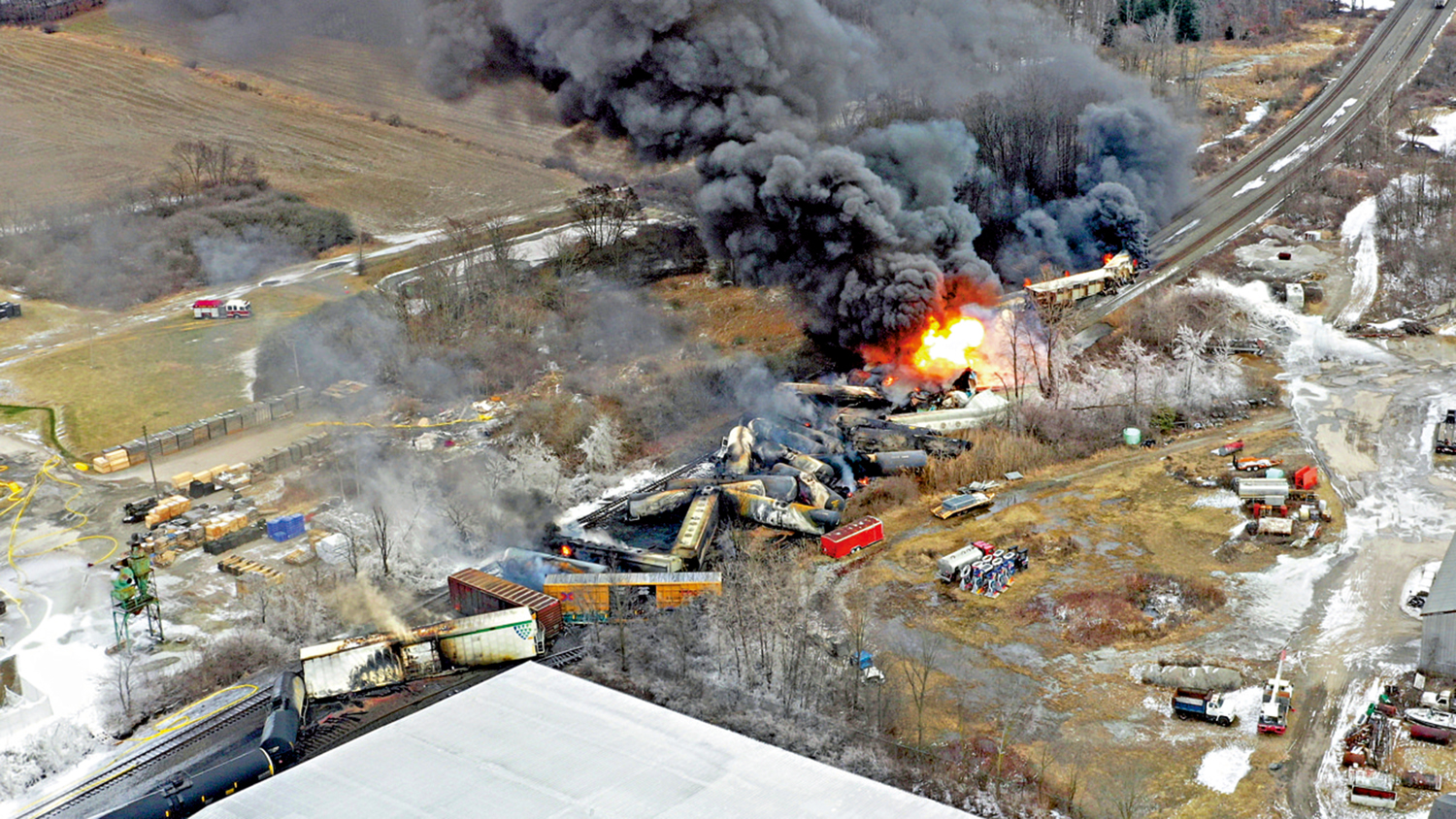 涉事列車共有20節車廂裝載有毒物質,包括5節運載壓縮氯乙烯的車廂。當地救援人員已迅速撲滅了火災,但為了安全起見,必須把車廂裏裝有劇毒化學物質進行燃燒處理,當局對當地居民下達疏散令。