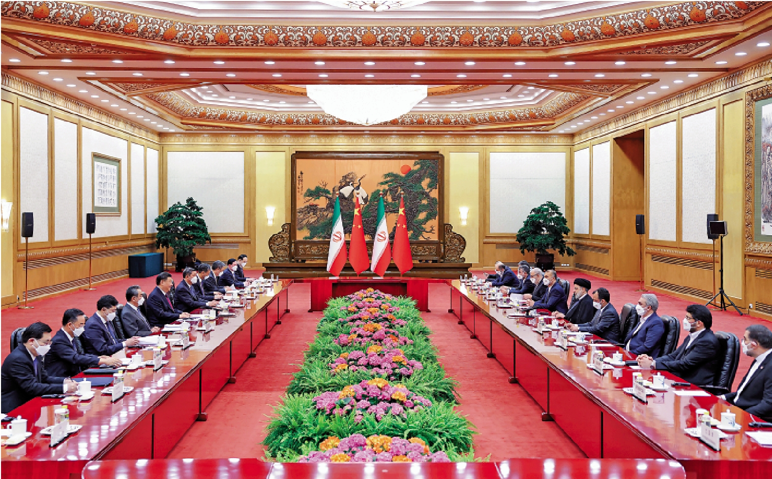習近平指出,維護中東穩定攸關地區國家和人民福祉,對維護世界和平、促進全球經濟發展、保障能源穩定供應至關重要。中方讚賞伊方願意積極改善同周邊鄰國關係,支持地區國家通過對話協商化解矛盾,實現睦鄰友好,願繼續為促進地區和平穩定發揮建設性作用。中方願同伊方在聯合國、上海合作組織等多邊平台加強溝通和協作,踐行真正的多邊主義,維護發展中國家共同利益。中方將繼續建設性參與伊朗核問題全面協議恢復履約談判,支持伊方維護正當合法權益,推動伊朗核問題早日妥善解決。