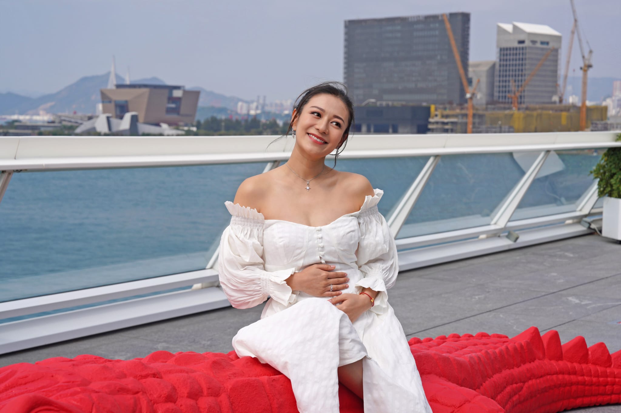 (大公文匯全媒體特約記者 陳惠芳)已宣布懷孕的江若琳,今日(15日)首次公開亮相,與張達倫父子出席尖沙咀的活動。原來已懷孕5個半月的她腳踏4吋高跟鞋,更言已進入穩定期,預產期為6月。她又自爆懷孕初期害喜反應大,不時嘔「白泡」,仿如大閘蟹。