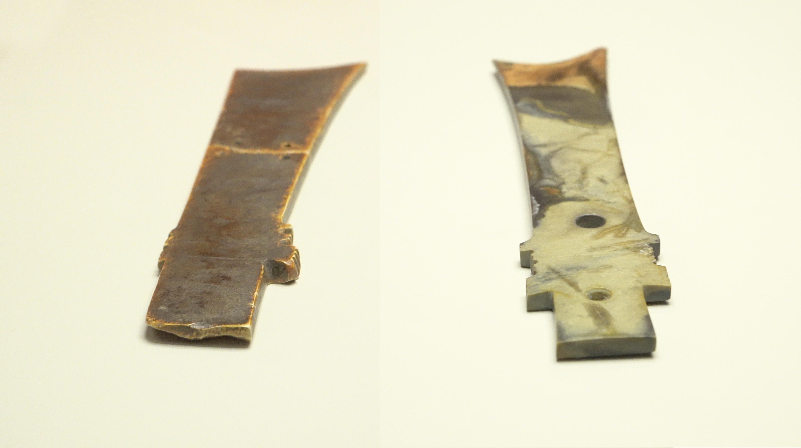 國家文物局此次還批准7件香港出土的文物一同參展。展館特意挑選七件香港出土的考古文物,與金沙遺址出土文物相比較。出土於香港南丫島的石戈與金沙遺址的玉戈一同展覽,石戈的裝飾雖不及金沙遺址的玉戈精美,但二者造型一致、用途相同,顯示千里之外的古蜀地,早已對南方的嶺南文化產生影響。出土於大嶼山蟹地灣的有領石環與青銅矛、青銅短劍等兵器也一併展出,這些香港文物均與來自成都的古物高度相似,體現出金沙文化與香港古時文化緊密相連,展現中華文明傳播範圍之廣,與中華古代文明起源的「多元一體性」。